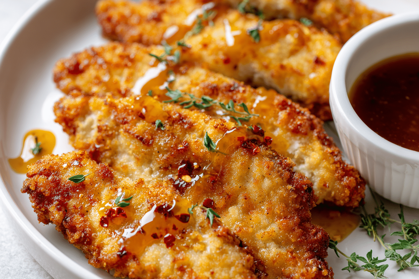 Crispy pan-fried chicken cutlets coated in a sweet and spicy honey mustard glaze. Ready in 15 minutes for a fast, flavorful meal.