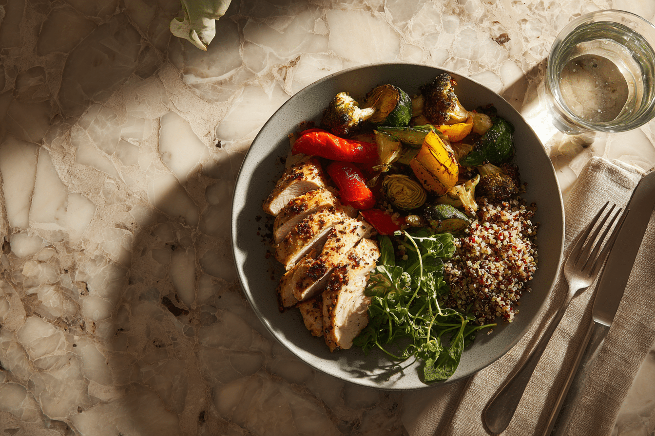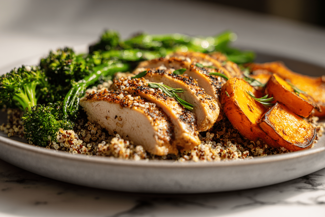 This 30 Minute Healthy Dinner Recipe offers a balanced mix of protein, fiber, and carbohydrates. Chicken breast provides lean protein that supports satiety, while vegetables contribute fiber and natural vitamins.