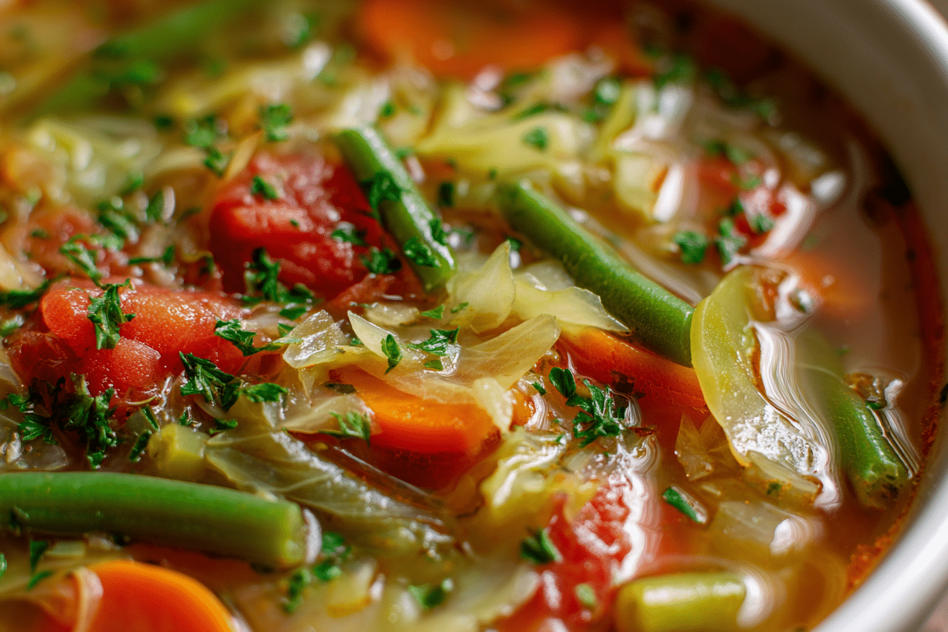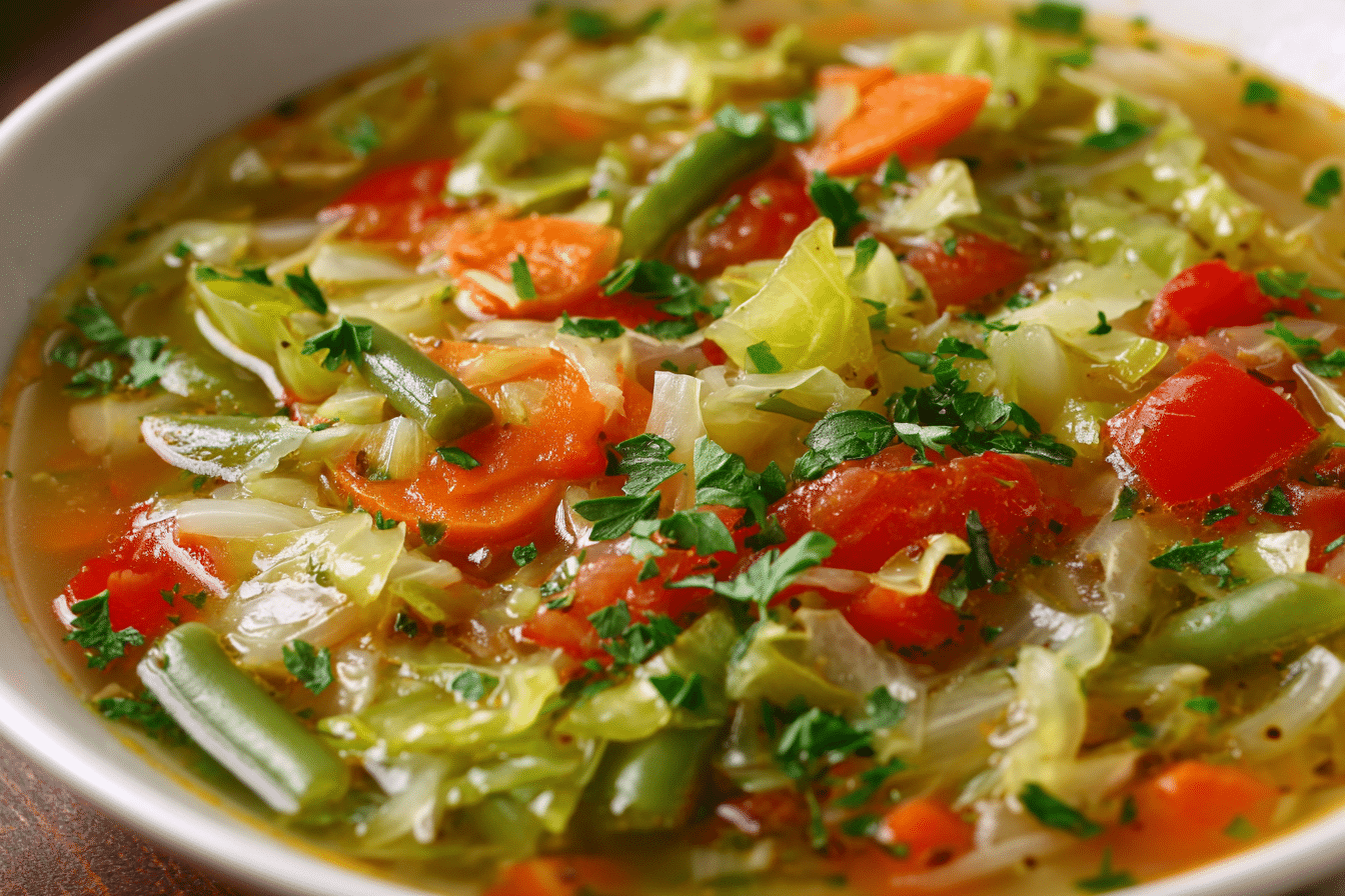 A light, veggie-packed soup with cabbage, tomatoes, and herbs — perfect for detox days or healthy eating goals.