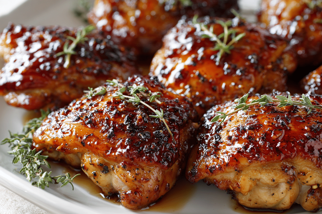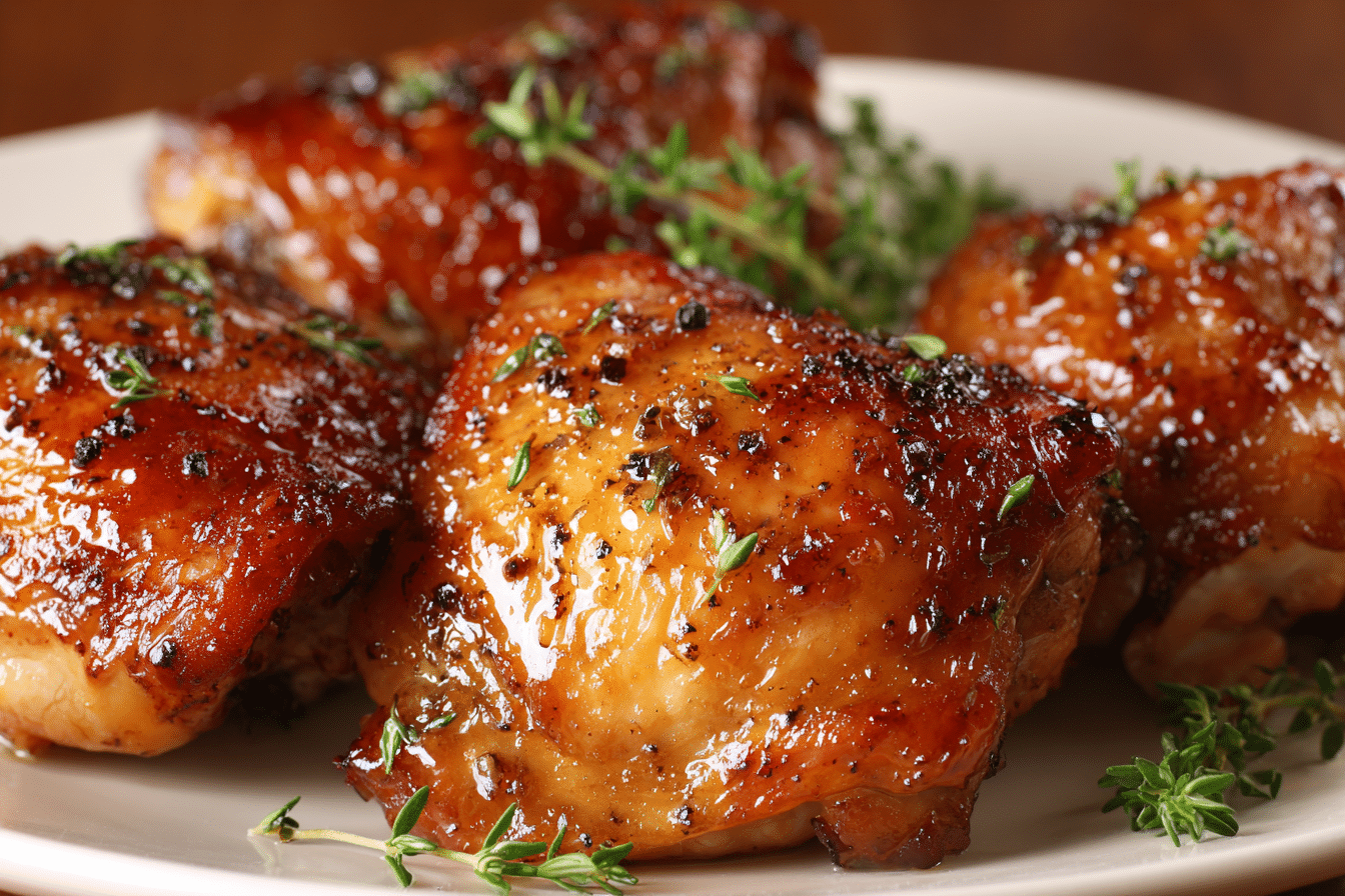Chicken thighs provide a great source of protein and tend to be juicier than leaner cuts like chicken breasts. They’re a little higher in fat, which contributes to flavor and texture. The glaze does add some sugar, but overall, the meal is balanced when paired with nutrient-rich sides.