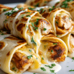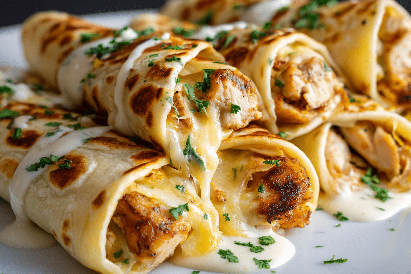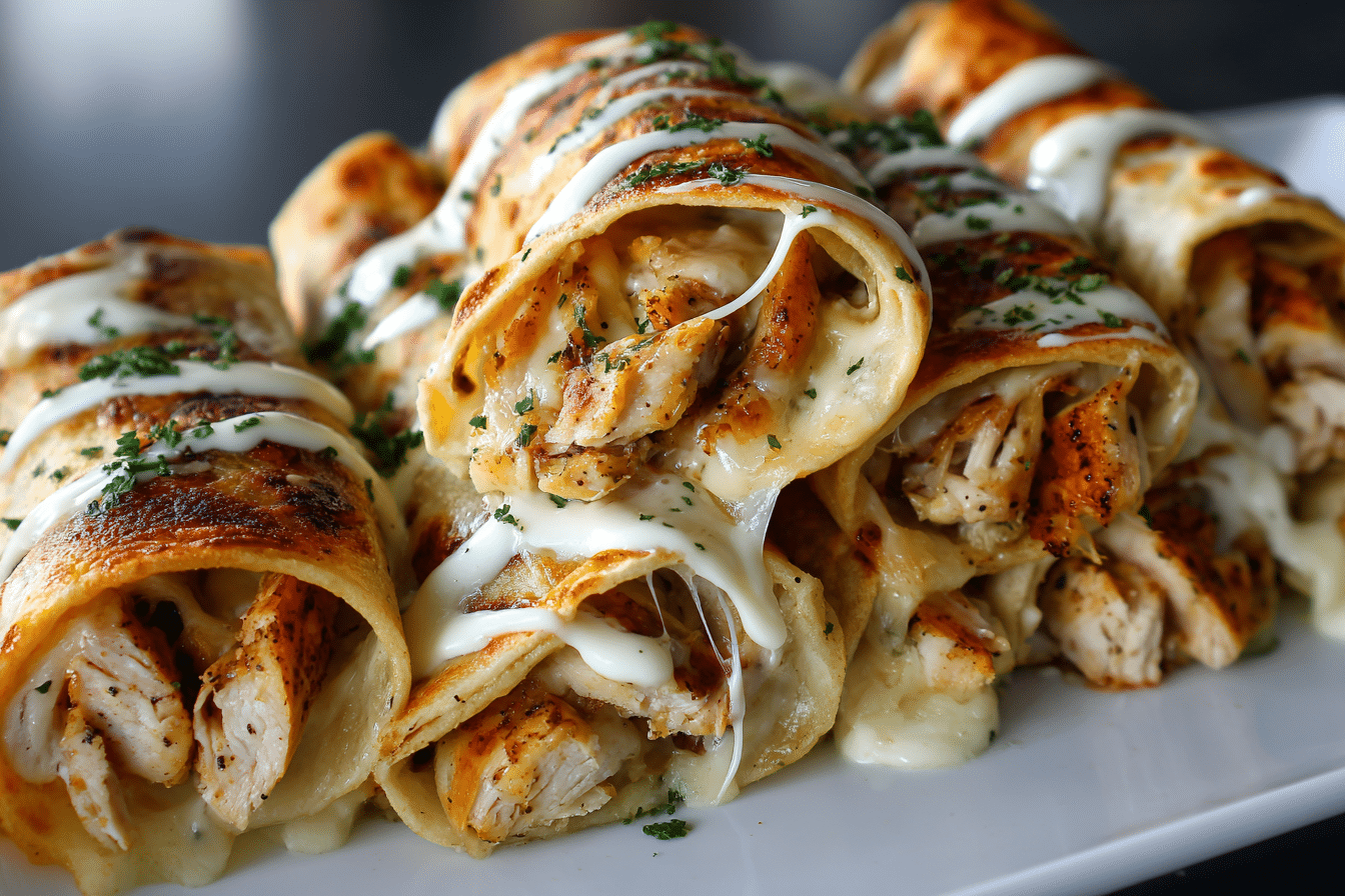 This recipe is a street-food-style mashup of bold garlic, creamy cheese, and tender chicken wrapped in warm tortillas and pan-toasted until crisp. It’s the kind of meal that comes together fast—perfect for busy weeknights, quick lunches, or party platters.
