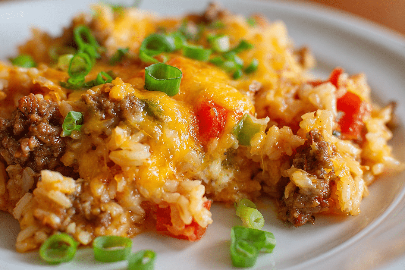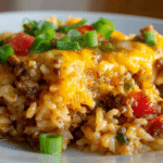 This kind of recipe has earned its place in home kitchens for decades—whether it’s served after a long day, brought to a potluck, or enjoyed as leftovers the next afternoon. Combining simple ingredients like savory ground beef, fluffy rice, creamy sauce, and plenty of melted cheese, this casserole delivers a warm and filling experience in every bite.