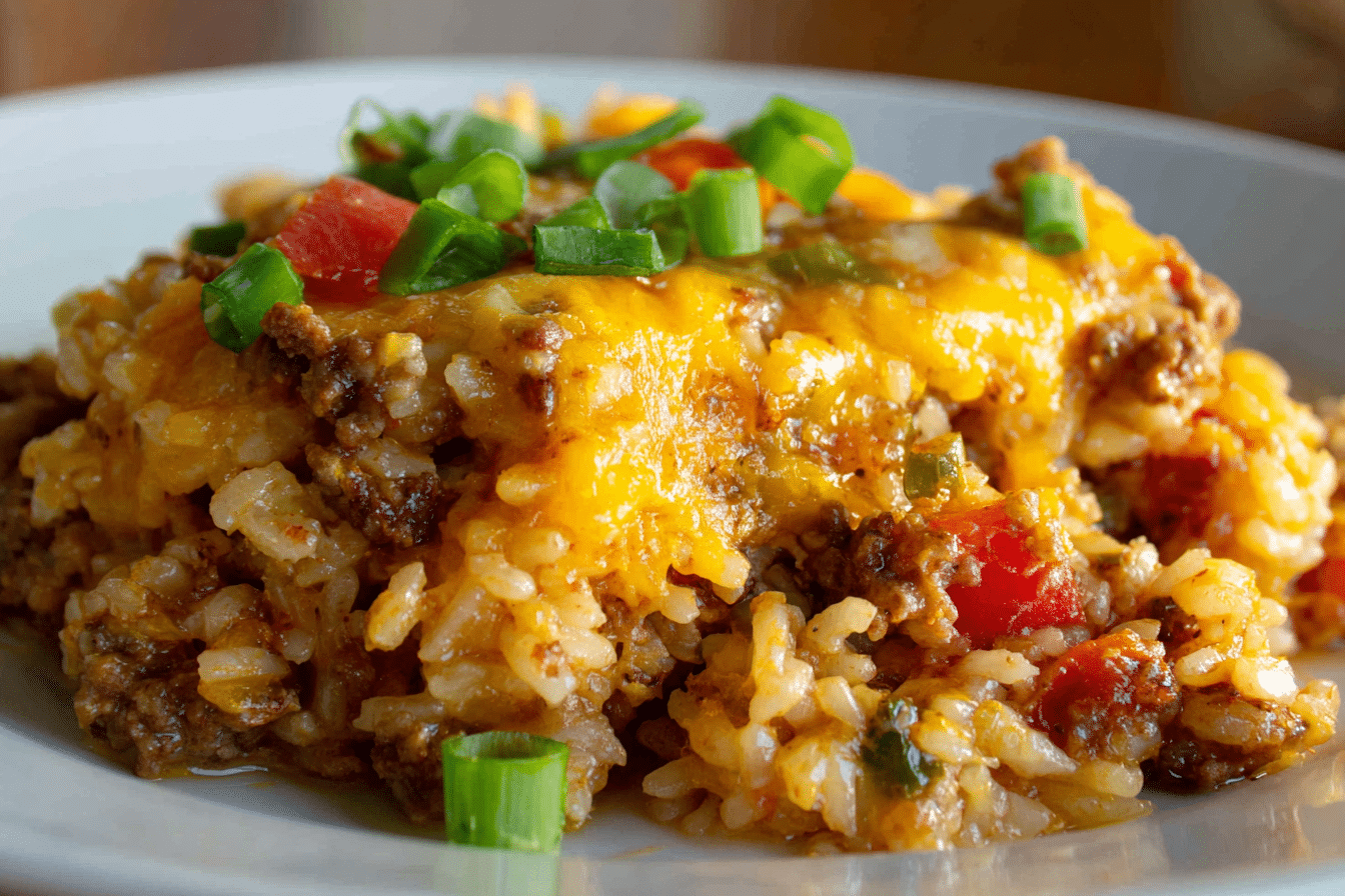 This kind of recipe has earned its place in home kitchens for decades—whether it’s served after a long day, brought to a potluck, or enjoyed as leftovers the next afternoon. Combining simple ingredients like savory ground beef, fluffy rice, creamy sauce, and plenty of melted cheese, this casserole delivers a warm and filling experience in every bite.