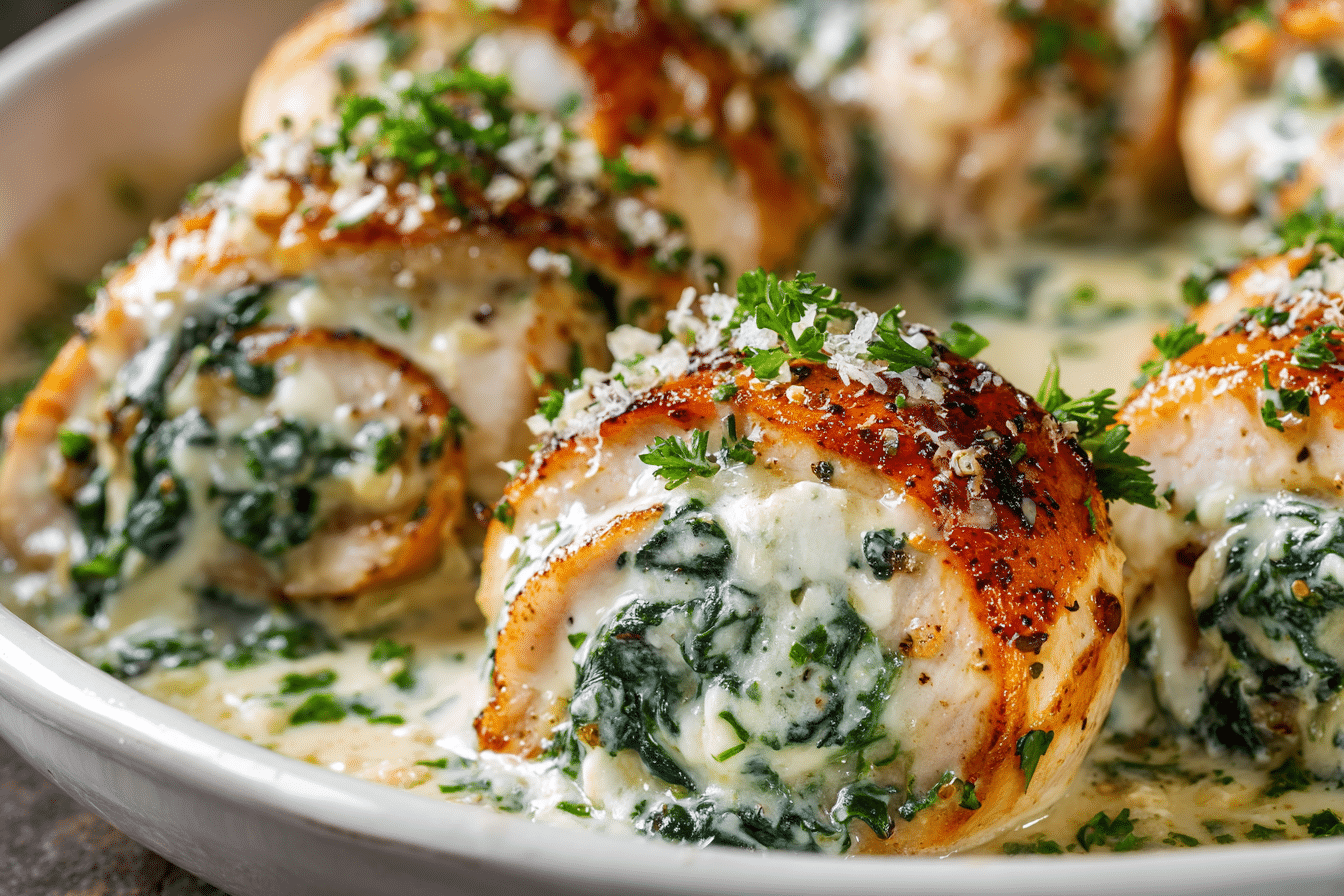 Cheesy Spinach Stuffed Chicken Roll-Ups offer the perfect blend of easy preparation and satisfying flavor. This dish transforms everyday ingredients into a creamy, cheesy, and golden-baked dinner that feels comforting and indulgent, yet light enough to enjoy regularly.