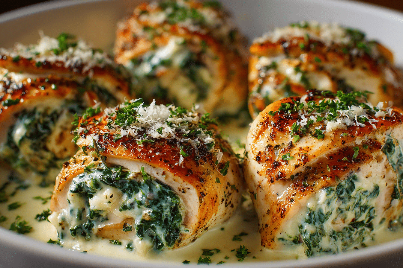 Cheesy Spinach Stuffed Chicken Roll-Ups offer the perfect blend of easy preparation and satisfying flavor. This dish transforms everyday ingredients into a creamy, cheesy, and golden-baked dinner that feels comforting and indulgent, yet light enough to enjoy regularly.