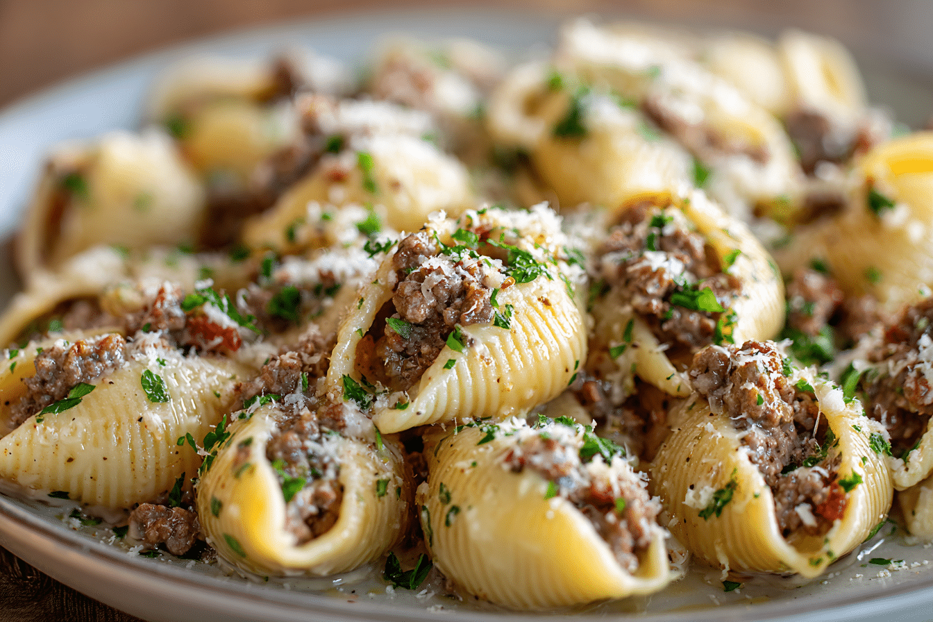 A rich, cheesy one-pot pasta dish with seasoned ground beef, tender shell pasta, and a creamy tomato sauce — perfect for weeknight dinners and leftovers.