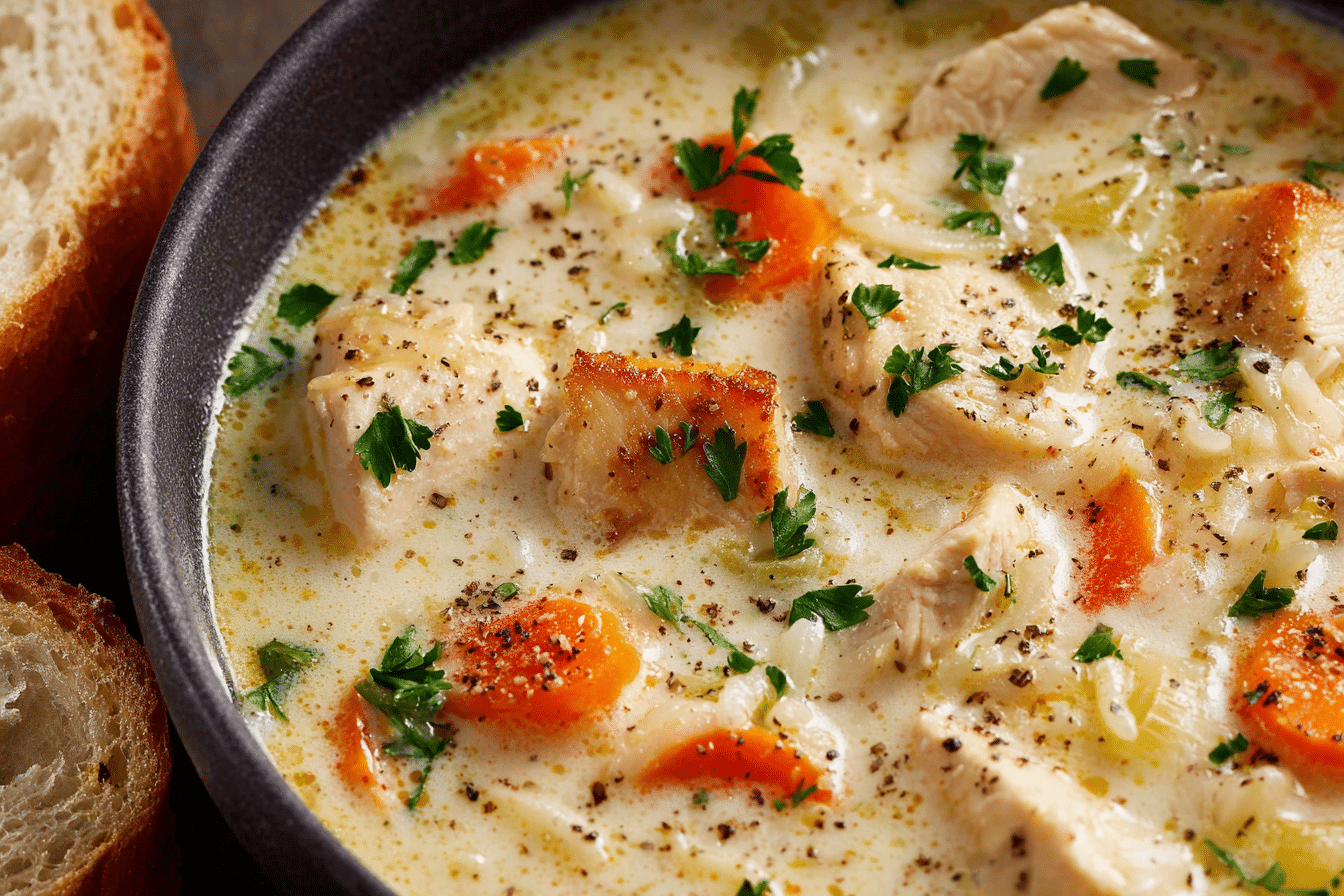 A rich and satisfying soup filled with tender chicken, garlic, parmesan, and rice—perfect for cold days or comforting dinners.