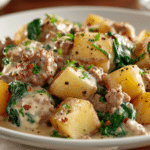 PrintA cozy and creamy one-pan dinner made with seasoned ground meat and tender potatoes in a smooth sauce. A fast, family-friendly meal with rich flavor and easy cleanup.