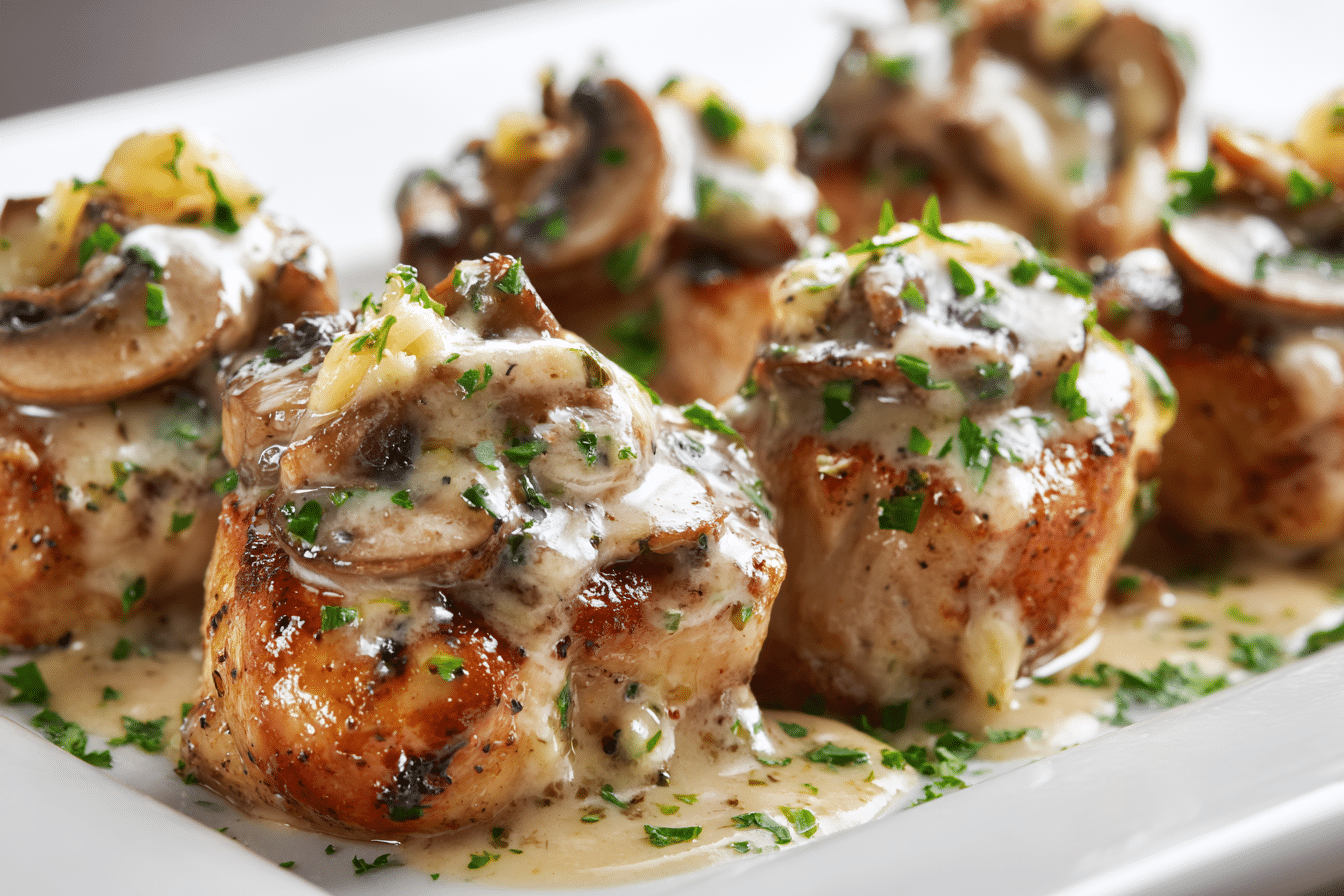 Rooted in European and American homestyle cooking, this recipe draws inspiration from French creamy sauces and rustic Italian flavors. The creaminess comes from a base of heavy cream or half-and-half, while fresh mushrooms add earthiness and depth. Garlic, shallots, and thyme infuse the sauce with aromatic notes that perfectly complement the tender chicken.