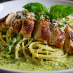 Creamy Pesto Parmesan Chicken Pasta features juicy chicken, a rich basil-Parmesan cream sauce, and pasta cooked to perfection. It’s a hearty and satisfying dish ideal for weeknights or relaxed dinner gatherings.