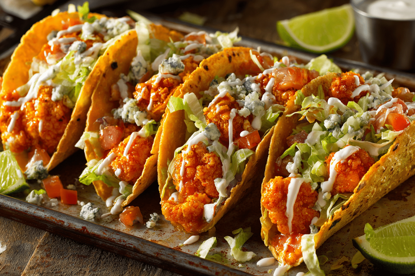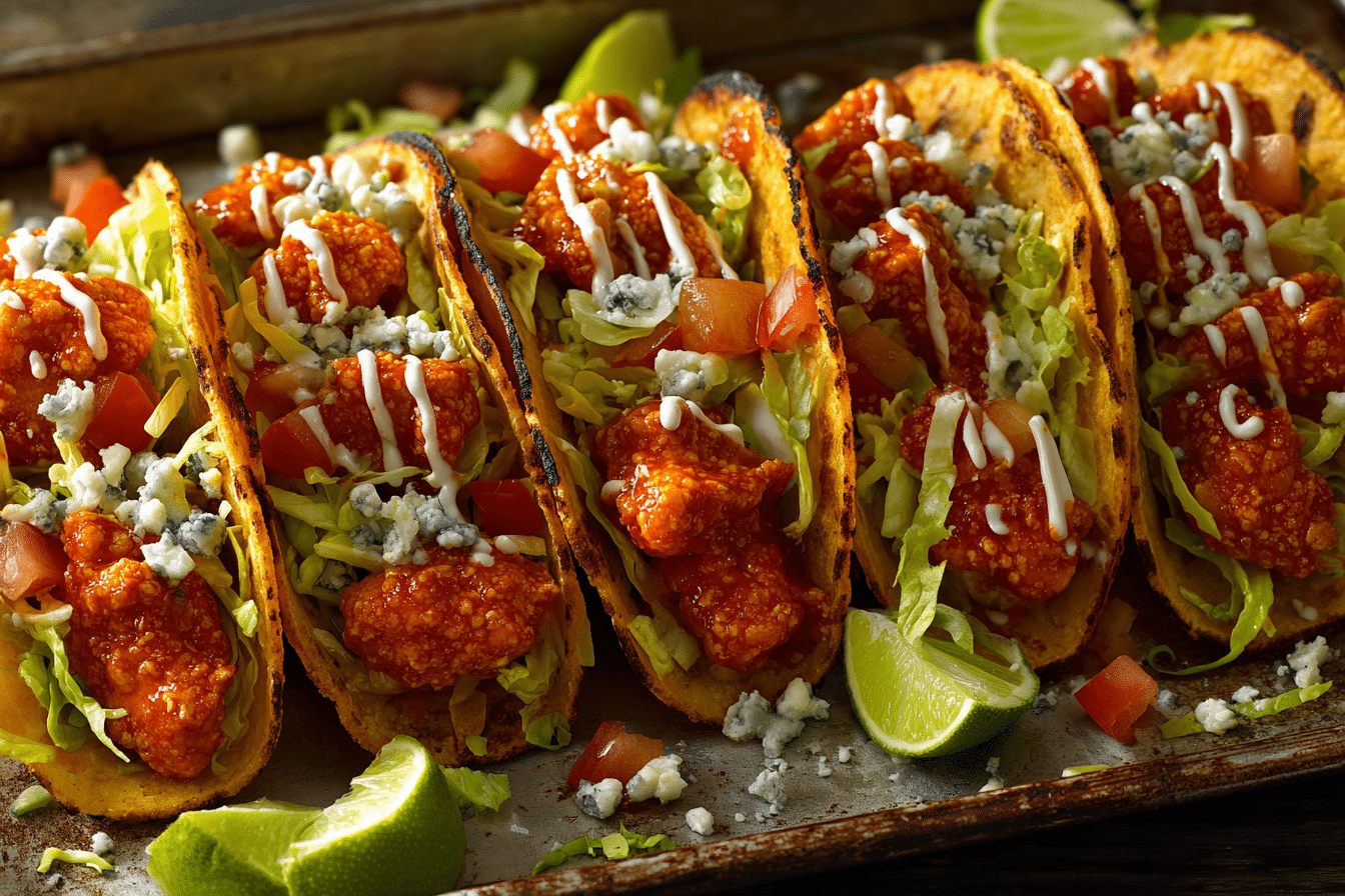 Crispy oven-baked chicken tossed in a sweet and spicy honey buffalo glaze, served in soft tortillas with fresh toppings. A flavor-packed, mess-free taco night favorite.