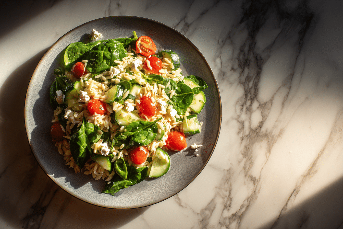 This version focuses on clean textures and balanced flavor in every bite. The orzo acts as a soft base that carries the dressing well, while vegetables add crunch and natural sweetness. A light lemon and olive oil mix ties everything together without feeling heavy.