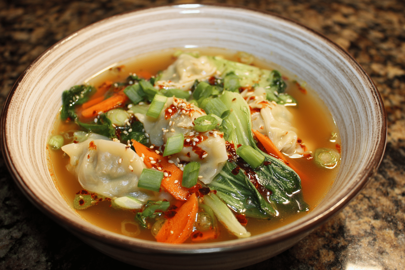 This easy potsticker soup combines savory broth, tender dumplings, and fresh vegetables for a cozy meal in under 30 minutes.