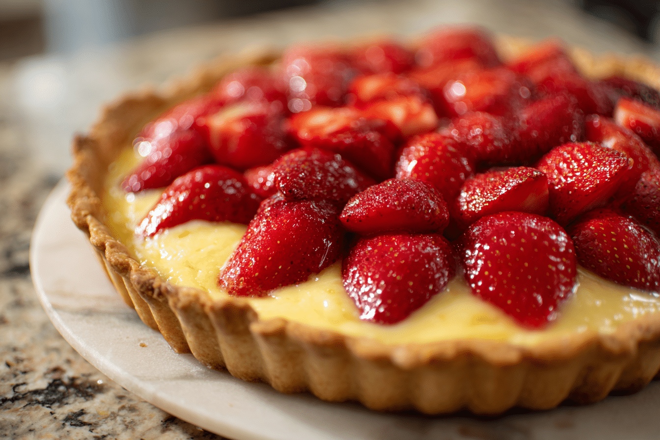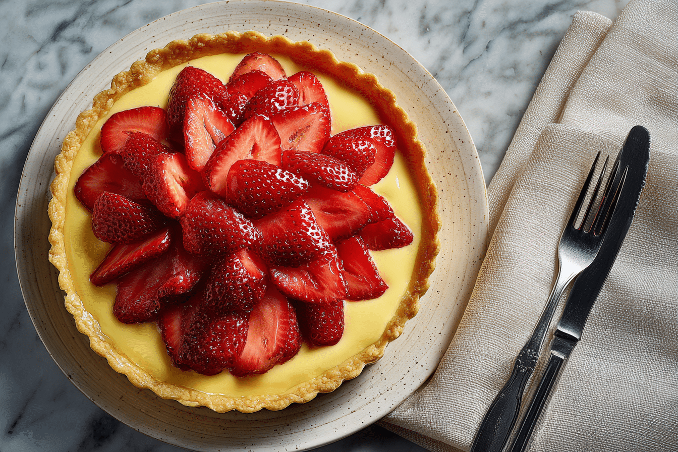 Strawberries are the star, offering sweetness and a touch of tartness that balances the custard’s richness. Select firm, fragrant berries, and slice them for even coverage. A light glaze of strawberry preserves or simple sugar syrup keeps the fruit glossy and fresh while enhancing its flavor. Together, these ingredients create a dessert that is rich, harmonious, and irresistibly appealing.