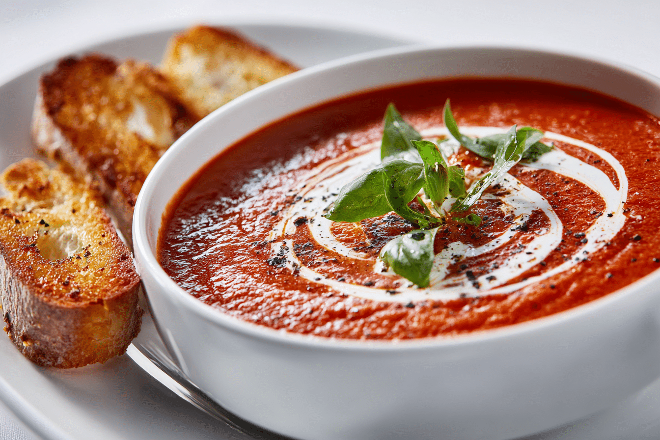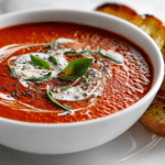 Unlike a basic tomato soup, this version takes time to build bold layers of flavor. The roasting process intensifies the natural sweetness of the tomatoes and adds a rich, smoky depth. Finished with a swirl of olive oil or a touch of cream, it’s smooth, vibrant, and balanced — a restaurant-quality bowl that’s surprisingly easy to make at home.