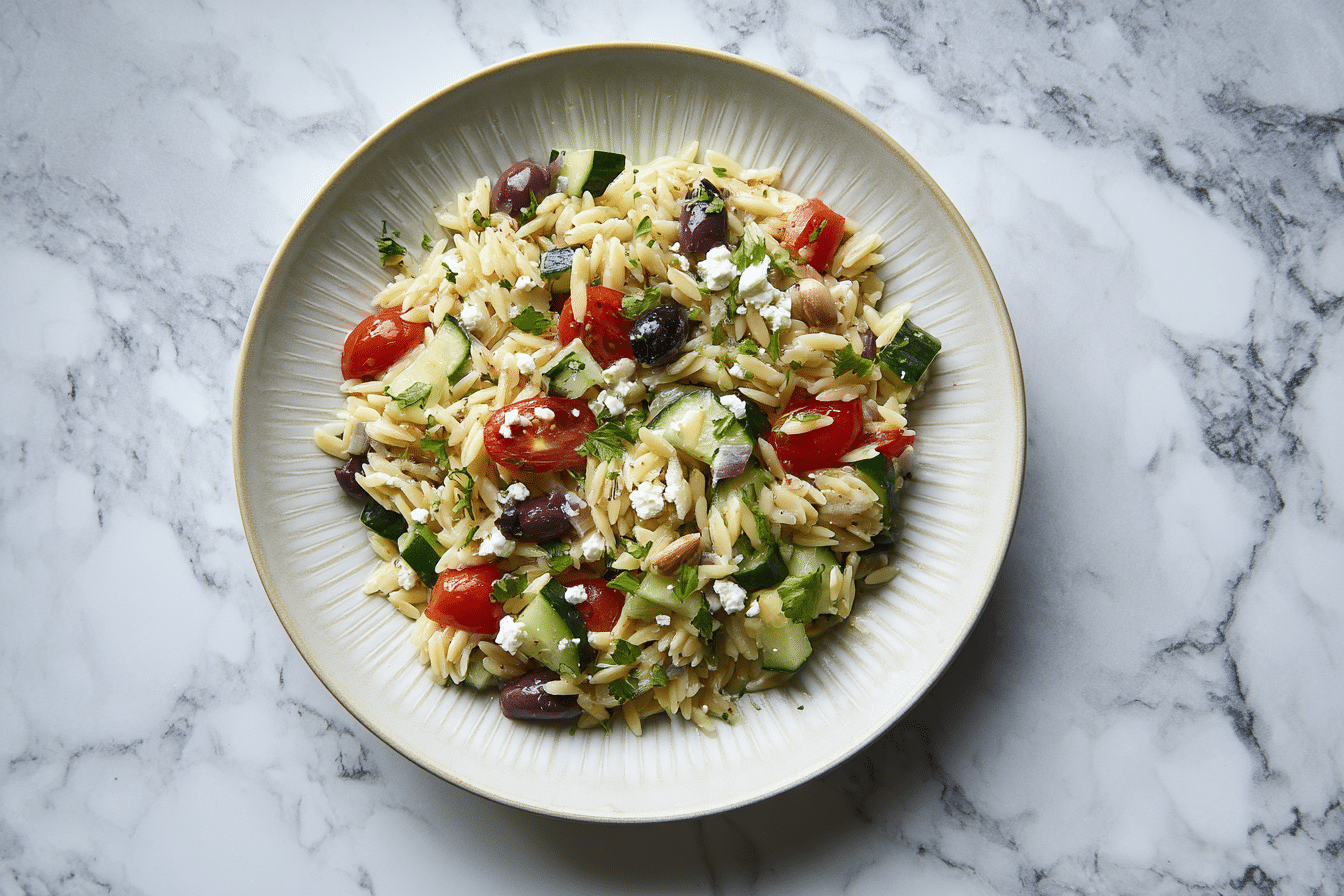 Greek Orzo Pasta Salad is a light, Mediterranean-inspired dish built around tender pasta, crisp vegetables, and a bright citrus dressing. It is the kind of recipe that works well for quick lunches, shared meals, or make-ahead planning when a cool, flavorful dish is needed.