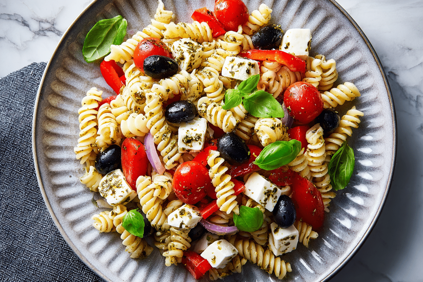 Italian Pasta Salad (Vegetarian) can be adjusted in many ways without changing its structure. Roasted vegetables such as zucchini or eggplant can be added for a deeper flavor profile. Fresh herbs like basil or parsley can be increased for a stronger herbal note.
