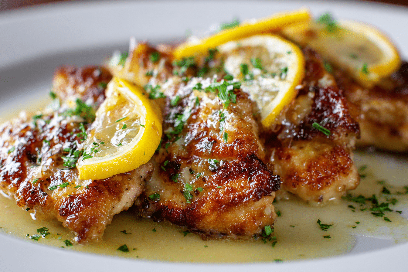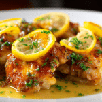 Perfectly golden chicken breasts are coated in a silky lemon butter pan sauce, making this a comforting yet refreshing main dish that pairs effortlessly with pasta, rice, or roasted vegetables.