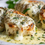 Mozzarella Chicken in Basil Cream Sauce is versatile—it works for quick dinners and feels elevated enough for special occasions. It’s perfect over a bed of pasta, creamy polenta, or mashed potatoes. If you want to keep it lighter, serve it with steamed vegetables or cauliflower rice.