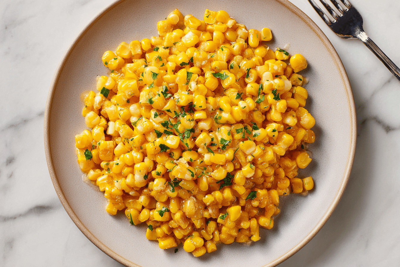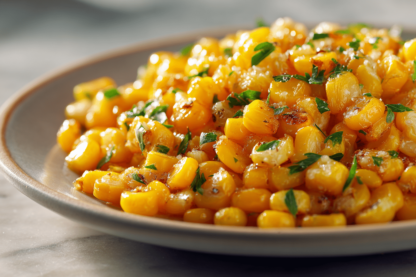 The corn is best served immediately after cooking to maintain texture and shine. Reheating gently in a skillet over low heat with a small pat of butter can restore flavor if necessary.