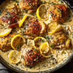 Tender, golden-seared chicken thighs are gently simmered in a smooth, lemon-scented cream sauce with a bold hint of black pepper. The contrast between creamy and citrusy is what makes this dish stand out—it’s refreshing yet rich, with just the right amount of spice. And best of all, it all comes together in a single skillet.