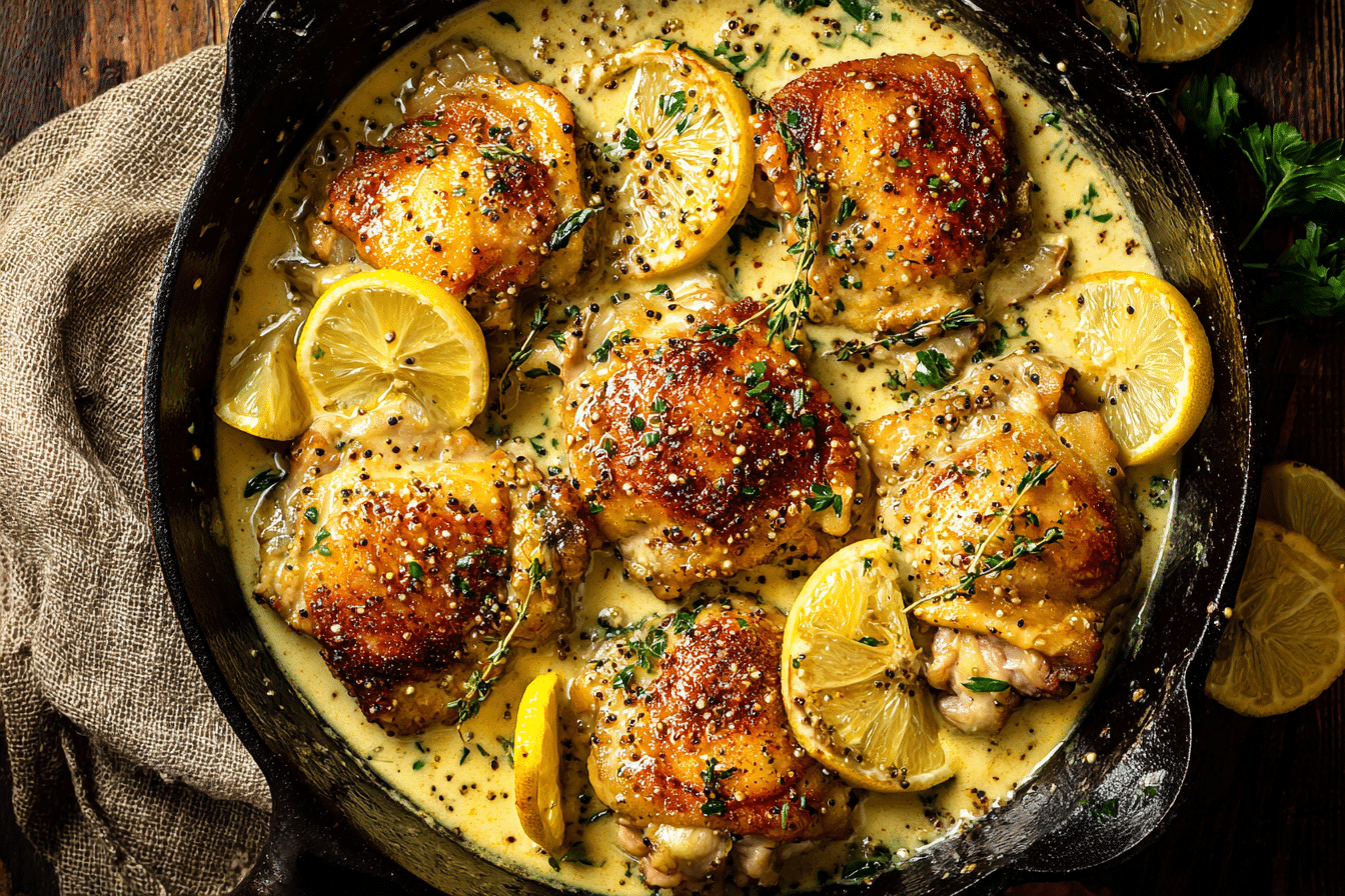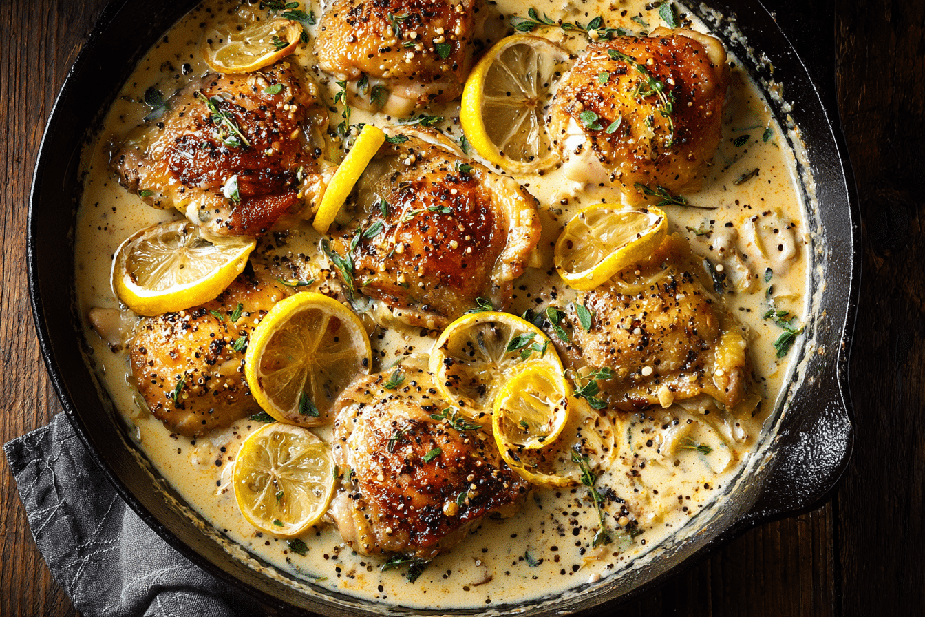 Creamy lemon pepper chicken thighs made in one skillet with tender, pan-seared meat and a rich, zesty sauce. A simple, satisfying meal perfect for busy nights.