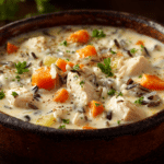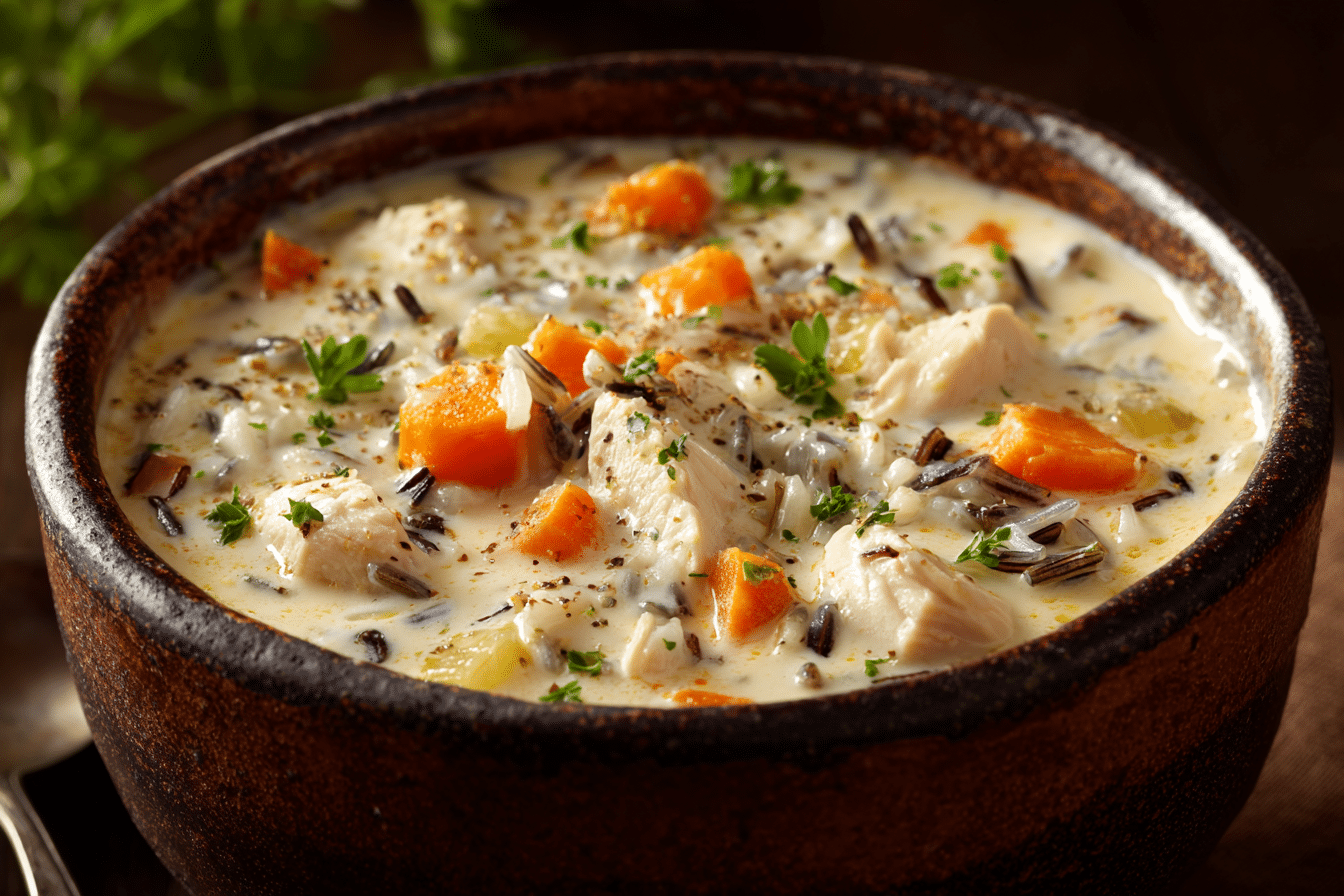 A cozy, flavorful slow cooker soup made with tender chicken, wild rice, vegetables, and a smooth, creamy broth — perfect for chilly days and comforting meals.