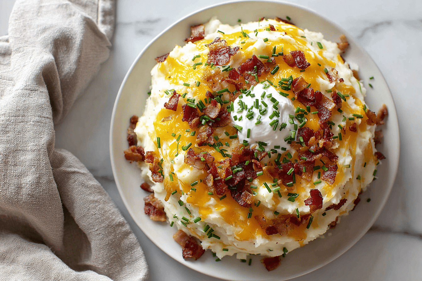 Cheddar cheese is a key component, adding a sharp, tangy flavor that balances the richness of the butter and cream. Sour cream contributes a gentle tang and softens the overall palate, keeping the dish from feeling overly heavy. Bacon bits introduce a smoky, salty crunch that contrasts beautifully with the smooth potatoes. Green onions or chives add freshness and a slight bite, making the dish more vibrant.