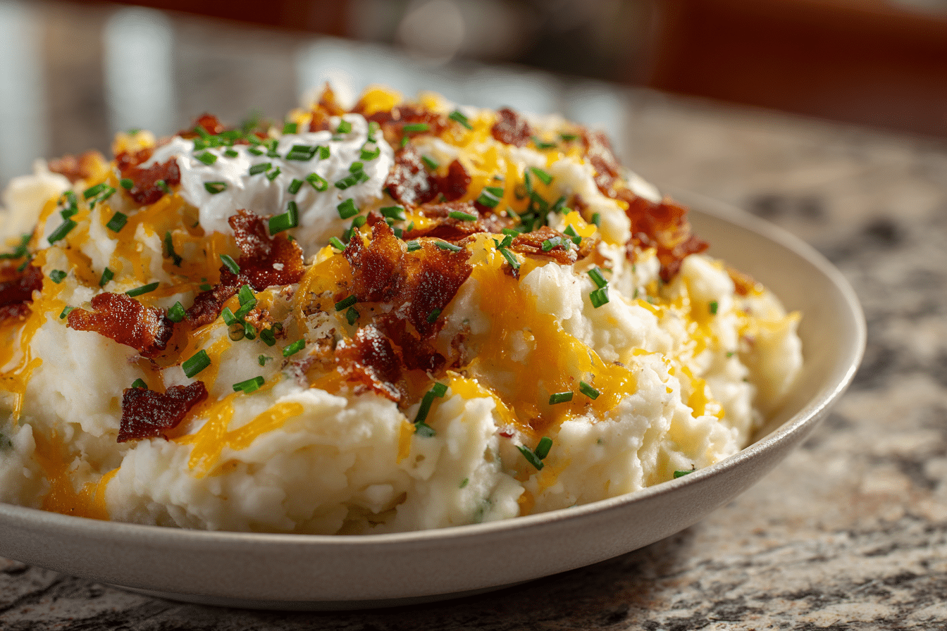 Cheddar cheese is a key component, adding a sharp, tangy flavor that balances the richness of the butter and cream. Sour cream contributes a gentle tang and softens the overall palate, keeping the dish from feeling overly heavy. Bacon bits introduce a smoky, salty crunch that contrasts beautifully with the smooth potatoes. Green onions or chives add freshness and a slight bite, making the dish more vibrant.