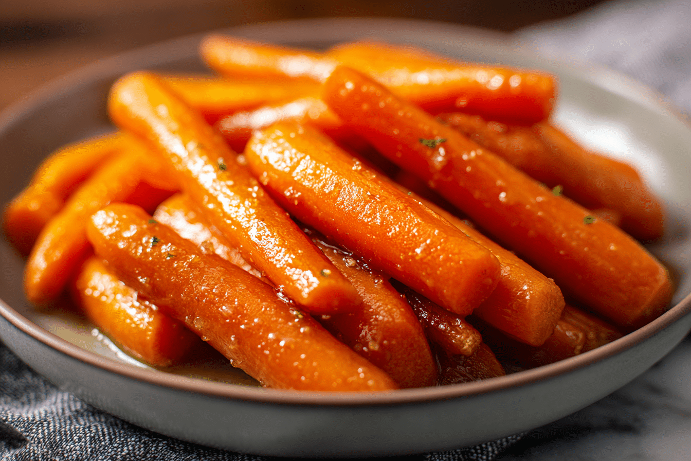 Sweet, tender carrots slow-cooked in a maple and brown sugar glaze, finished with butter and optional spices for a comforting side dish.