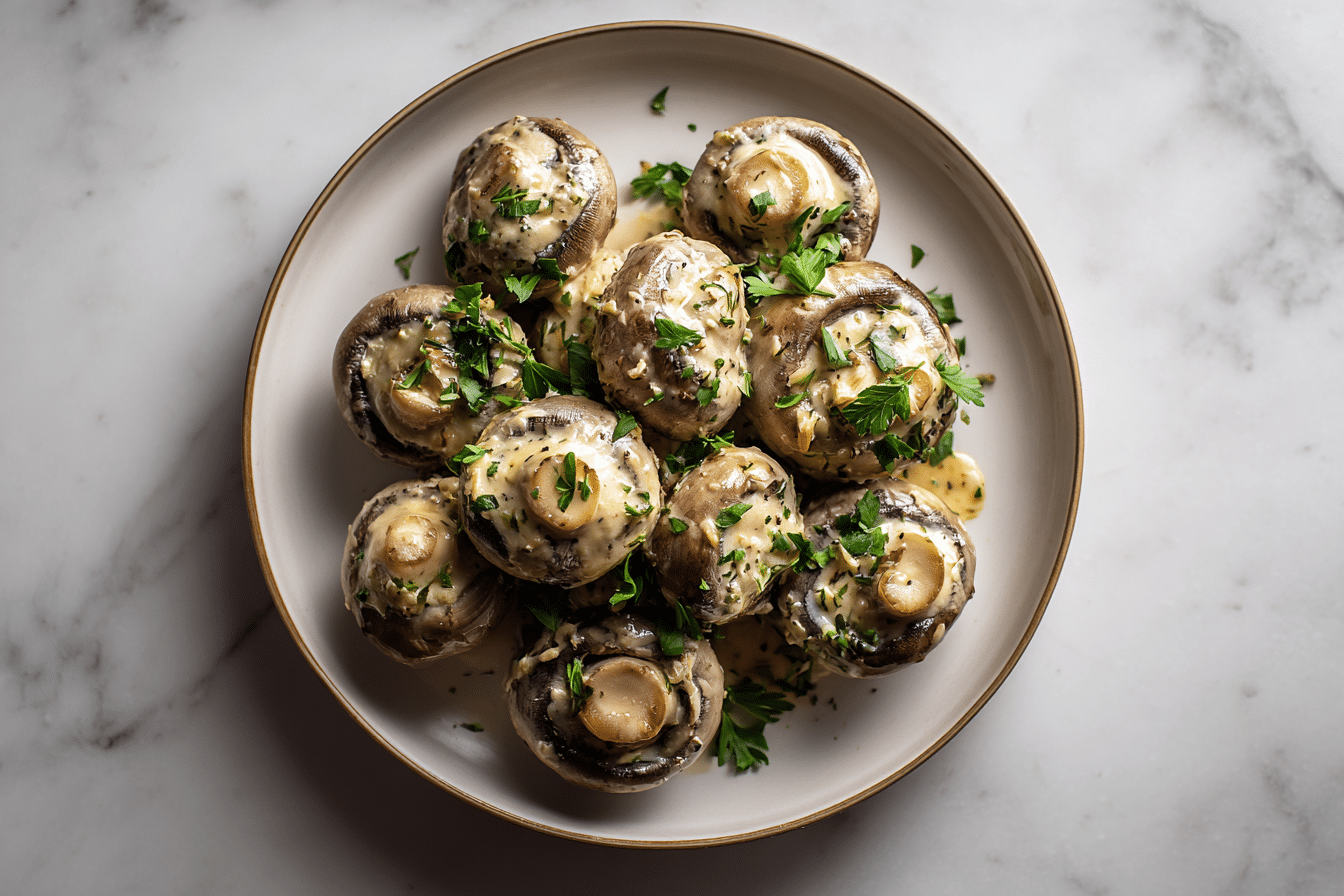 Ranch dressing acts as the main seasoning. Its combination of buttermilk, garlic, onion, and herbs infuses the mushrooms with a savory, slightly tangy flavor. Full-fat ranch adds luxurious creaminess, while lighter options keep the dish lower in calories without compromising taste. Garlic and onions deepen the dish’s flavor, providing subtle sweetness and savory notes.