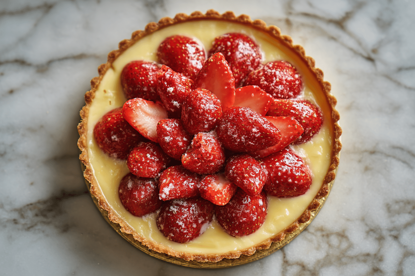 Fresh strawberries are the highlight. Pick ripe, firm, and aromatic berries for optimal flavor and color. To prevent the custard from becoming soggy, arrange the strawberries just before serving. When strawberries aren’t in season, other berries like raspberries or blueberries can substitute. A simple glaze, such as warmed apricot jam, can add shine and help preserve freshness.